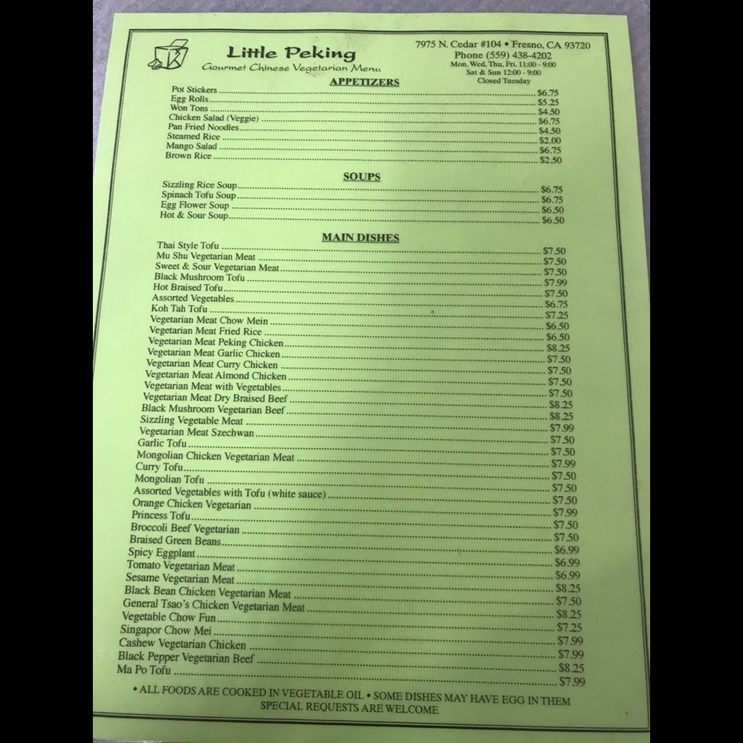 For general comments or questions about catering needs, reservations, ordering, menu items etc., please call Little Peking directly during business hours. (559) 438-4202